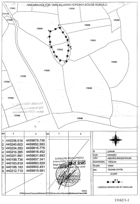 Kurul kararıyla birlikte, höyüğün 178 ada 52 ve 54 numaralı parseller üzerinde yer aldığı ve hem kamu hem de özel mülkiyet alanlarını kapsadığı belirlendi. Höyüğün sınırları, karar eki 1/2000 ölçekli kadastral harita üzerinde açık biçimde gösterildi ve belirtilen koordinatlar esas alındı.