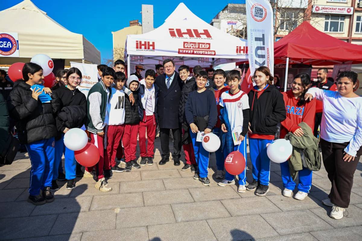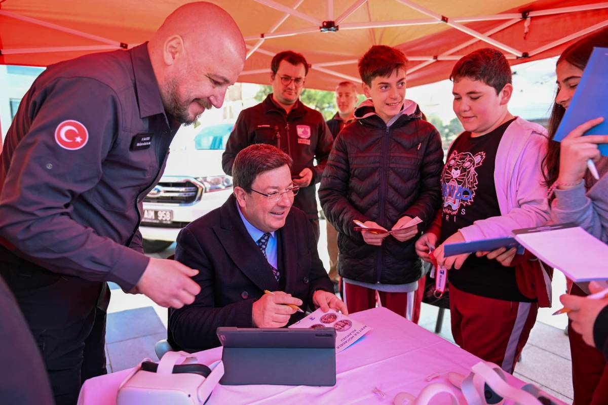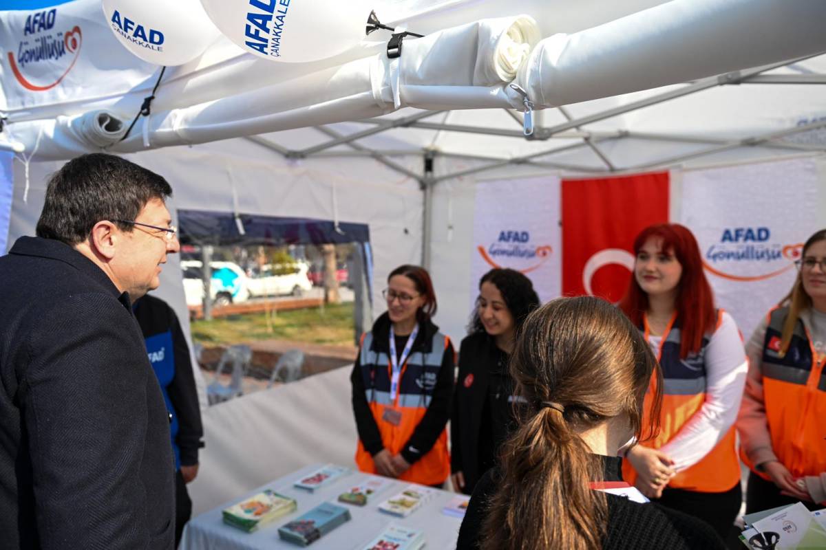 Çanakkale Belediyesi Afet İşleri ve Risk Yönetimi Müdürlüğü, etkinlikte kentin deprem stratejileri ve belediye bünyesinde yürütülen risk yönetimi çalışmalarıyla yerini aldı. Çanakkale Belediye Başkanı Muharrem Erkek, meydanda kurulan stantları tek tek gezerek çalışmalar hakkında bilgi aldı. Belediye personeli ve diğer kurum temsilcileriyle görüşen Başkan Erkek, afet yönetiminin sadece müdahale değil, asıl olarak "önleme ve hazırlık" süreci olduğunun altını çizdi. Başkan Erkek’in ziyareti sırasında vatandaşlarla da sohbet ederek, evlerdeki deprem çantalarının önemi ve yapı stokunun durumu gibi kritik konularda belediyenin hassasiyetini dile getirmesi dikkat çekti.