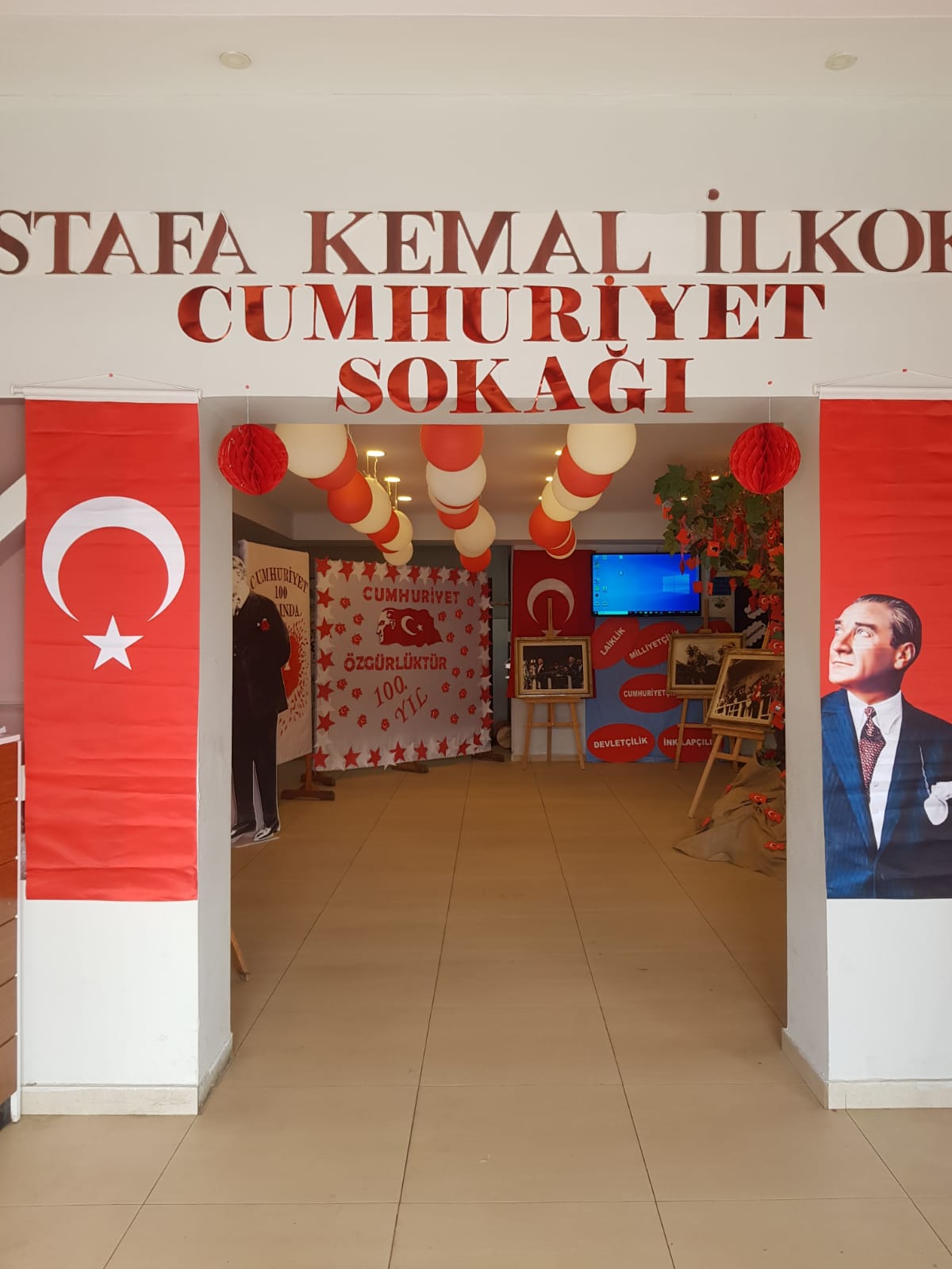 Yapılan etkinlikler ile ilgili Mustafa Kemal İlkokulu’ndan yapılan bilgilendirmede, “Cumhuriyetimizin 100.yılı sebebiyle okulumuzda 23-27 Ekim tarihleri arasında hafta boyunca çeşitli etkinlikler düzenlenmiştir. Bu kapsamda okulumuz giriş katında "Cumhuriyet Sokağı " hazırlanmıştır. Sokağımızda Cumhuriyet coşkusunu doyasıya yaşamaları için, öğrenci ve velilerimize yönelik fotoğraf çekilme alanları bulunmaktadır. Yapay zeka teknolojisiyle Atatürk 'ün sesinden sevdiği şarkılar eşliğinde, öğrencilerimiz 100. yıla Ata'mıza ithafen duygu ve düşüncelerini yazdıkları mektuplarını sokakta bulunan Cumhuriyet Ağacı'na asacaklardır. Sokağımızda Ayrıca Atatürk fotoğrafları sergi alanı bulunmaktadır” denildi.