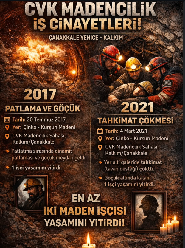 İda Dayanışma Derneği, CVK Madencilik’in Yenice Kalkım’daki sahalarında meydana gelen ölümlü kazaları gündeme getirerek, şirketin iş güvenliği karnesine dikkat çekti. 2017 yılında dinamit patlatması sırasında yaşanan göçükte bir işçinin hayatını kaybetmesi ve 4 Mart 2021 tarihinde 34 yaşındaki Gazi Baytimur’un tahkimat çökmesi sonucu yaşamını yitirmesi, projenin insani boyutuna dair soru işaretlerini artırıyor. Dernek, bu kazaların hatalı ateşleme, yetersiz güvenlik önlemi ve tavan desteği eksikliği gibi doğrudan ihmal kaynaklı nedenlerle yaşandığını savunuyor.