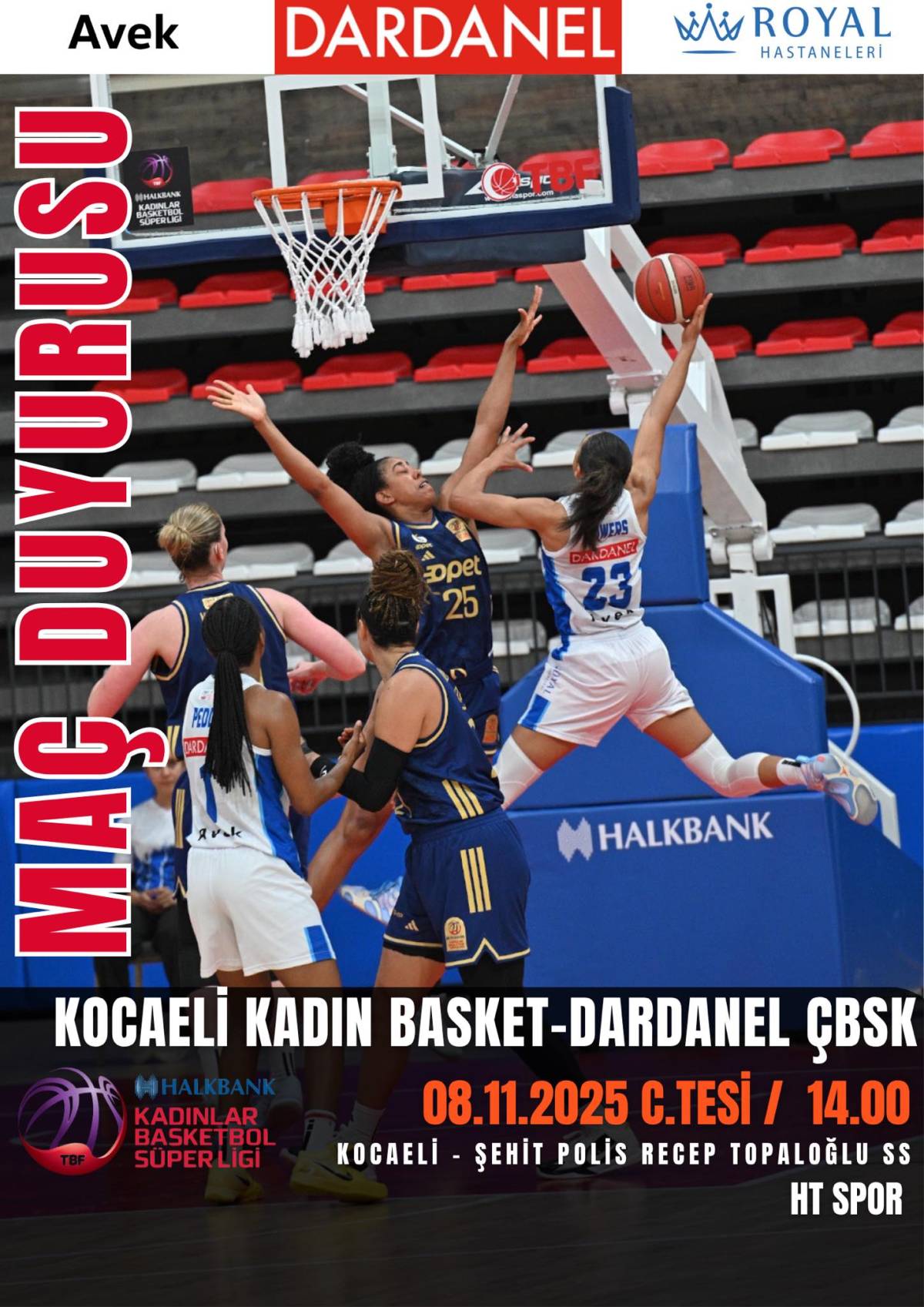 Türkiye Basketbol Federasyonu Halkbank Kadınlar Süper Ligi’nde 6. hafta heyecanı yaşanıyor. Dardanel Çanakkale Belediyespor, haftanın önemli karşılaşmalarından birinde Kocaeli Kadın Basketbol ile deplasmanda karşı karşıya gelecek. Mücadele, 8 Kasım 2025 Cumartesi günü saat 14.00’te Kocaeli Şehit Polis Recep Topaloğlu Spor Salonu’nda oynanacak. Karşılaşma HT Spor ekranlarından canlı olarak yayınlanacak.