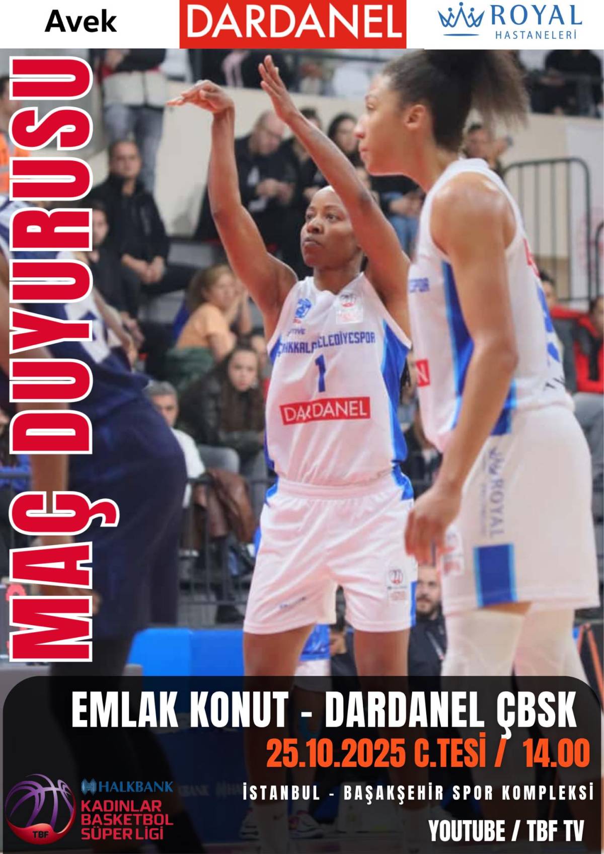 Karşılaşma, 25 Ekim 2025 Cumartesi günü saat 14.00’te İstanbul Başakşehir Spor Kompleksi’nde başlayacak. Mücadele, basketbolseverler tarafından YouTube/TBF TV ekranlarından canlı olarak izlenebilecek.