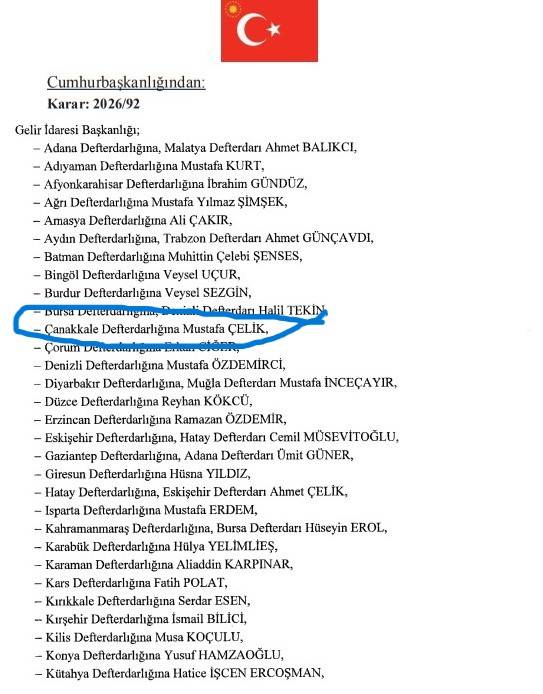 İşte yayımlanan bu karar, Çanakkale Defterdarı Mustafa Çelik’in zaten yürüttüğü görevin artık hukuki olarak kesinleştiğini gösteriyor.