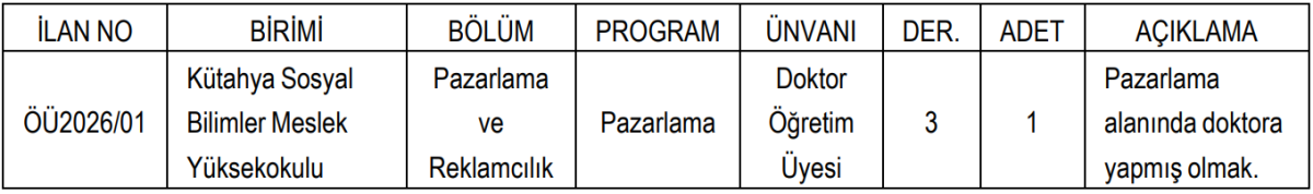 Başvuruların süresi 15 gün olarak belirlenirken, adayların KPSS, YDS/YÖKDİL ve akademik kriterleri karşılaması gerekiyor. Demiroğlu Üniversitesi için Fizyoterapi ve Beslenme alanındaki adaylar, yüksek lisans ve doktora belgelerini teslim etmek zorunda. Kütahya Dumlupınar Üniversitesi’nde ise pazarlama alanında doktora şartı ve merkezi yabancı dil sınavı puanı aranıyor.