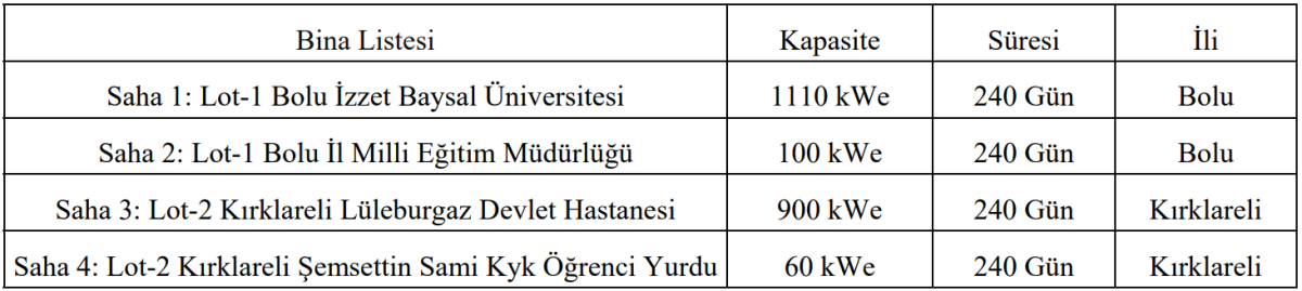 İhale kapsamında Bolu ve Kırklareli’nde toplam 4 farklı noktada GES kurulumu gerçekleştirilecek.