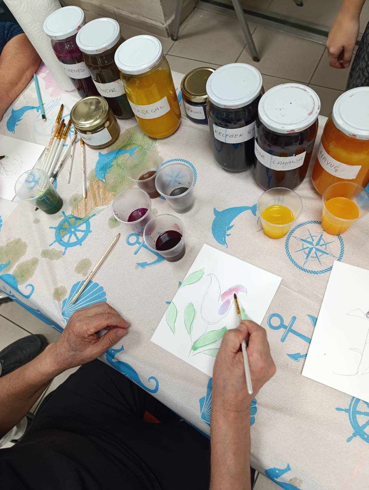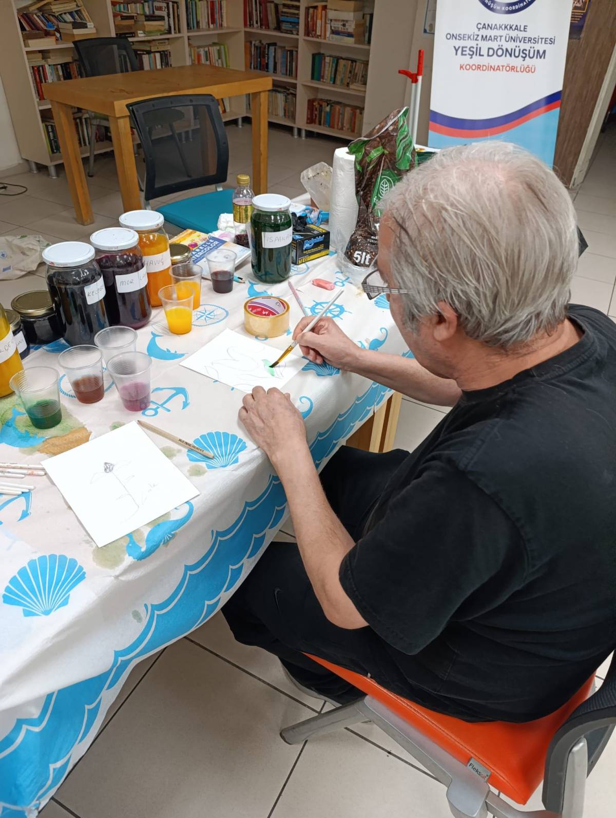 Atölyede, huzurevi sakinleri ve genç gönüllüler bir araya gelerek doğal boyalarla resim çalışmaları yaptı. Çalışmalar sırasında doğadan elde edilen renkler ve materyallerin kullanılması, etkinliğin sürdürülebilirlik ve çevre bilinci yönünü ön plana çıkardı.
