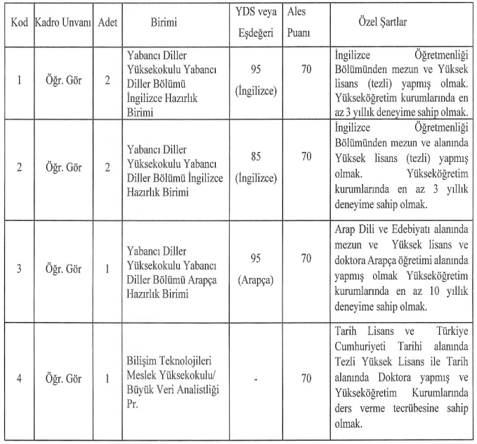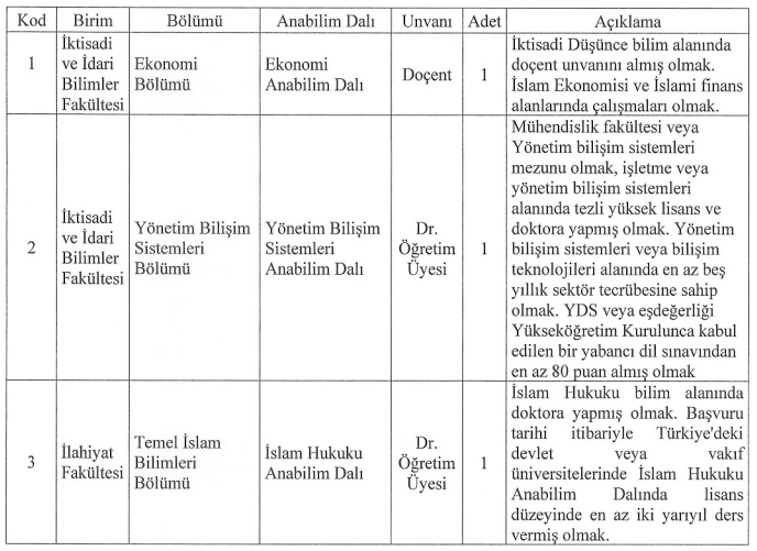 İstanbul 29 Mayıs Üniversitesi tarafından yayımlanan ilana göre alım yapılacak kadrolar şu şekilde açıklandı: