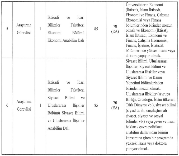 Araştırma Görevlisi adayları ise aynı tarihe kadar başvurularını ilgili fakülte dekanlıklarına yapacak. Posta yoluyla yapılan başvurularda yaşanabilecek gecikmelerin dikkate alınmayacağı özellikle vurgulandı.
