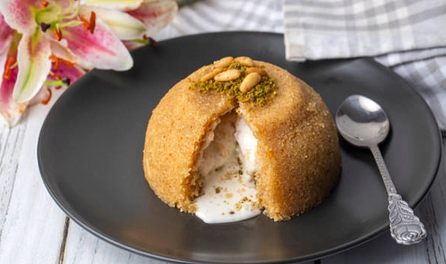 Servis: Helva kıvam aldıktan sonra ocaktan alın ve bir süre dinlenmeye bırakın. Servis için bir tatlı kasesine bir miktar irmik helvası koyun ve ortasına bir top dondurma yerleştirin. Dondurma eridikçe, irmik helvasıyla birleşerek harika bir lezzet oluşturacaktır.