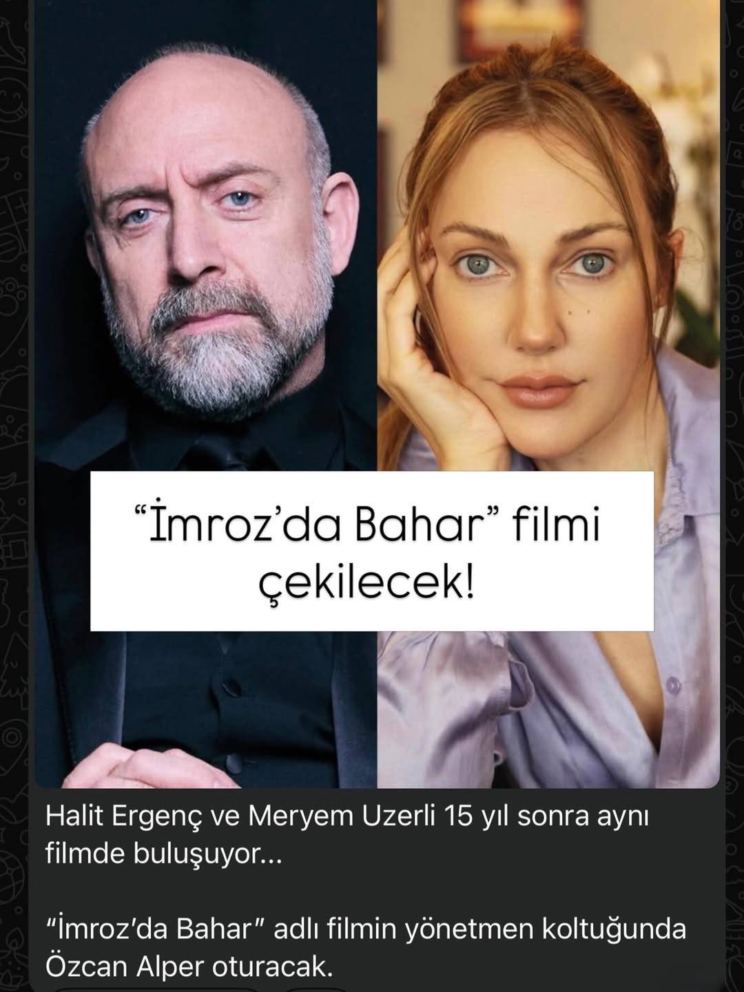Türk televizyon ve sinema dünyasının dikkat çeken iki ismi Halit Ergenç ile Meryem Uzerli, yaklaşık 15 yıl aradan sonra aynı projede yeniden bir araya geliyor. “İmroz’da Bahar” adlı filmde başrolleri paylaşacak olan iki oyuncu, yeni bir sinema projesiyle izleyici karşısına çıkmaya hazırlanıyor.