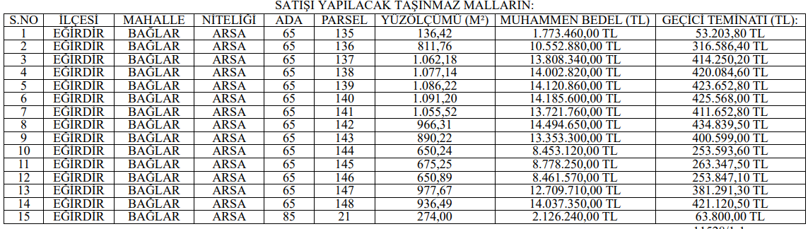 Eğirdir Belediyesi, bölgenin gelişimine katkı sağlayacak bu önemli gayrimenkullerin satışıyla ilgili tüm detayları kamuoyuyla paylaşmıştır.