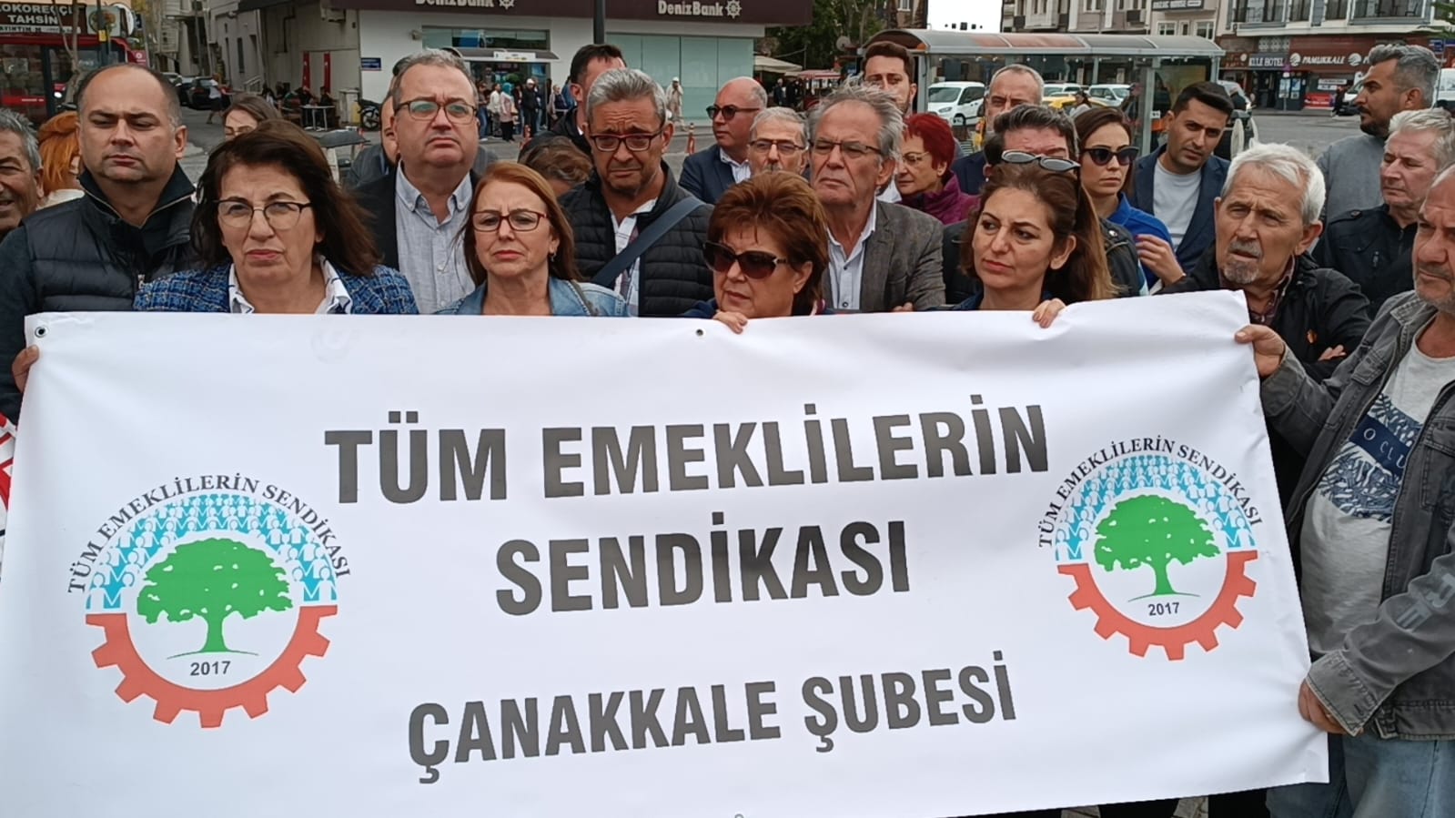 Tüm Emeklilerin Sendikası Çanakkale Şubesi tarafından İskele Meydanında basın açıklaması yapıldı. Yapılan açıklamada, sendikalarının kapatılması için dava açıldığı belirtilerek, “Şu an Türkiye'de emeklilerin bırakalım iyi yaşadıklarını, bırakalım yoksul yaşadıklarını, açlık sınırı altında sürünüyorlar. Bu ayıp iktidarındır. Dava açılacaksa adres bellidir. O adresin emekli sendikaları olmadığı kesindir” denildi.