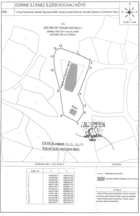 Kocaali köyündeki Kocaali Çeşmesi, Su Derleme Yapısı ve yakınındaki Kocaali Köprüsü, 1. grup korunması gerekli kültür varlığı olarak tescillendi.