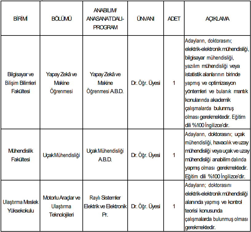 Akademik kariyer hedefleyen adayların yakından takip ettiği ilan, özellikle %100 İngilizce eğitim verilen bölümlerde görev almak isteyen öğretim üyeleri için önemli bir fırsat sunuyor.