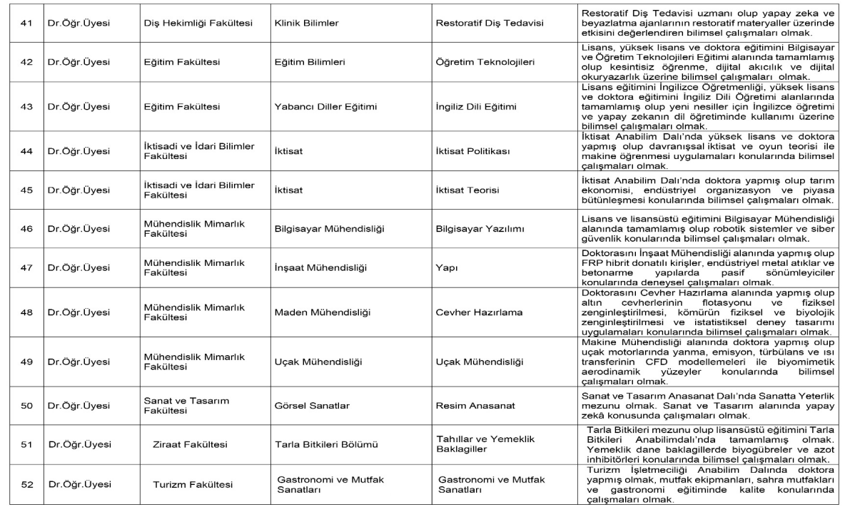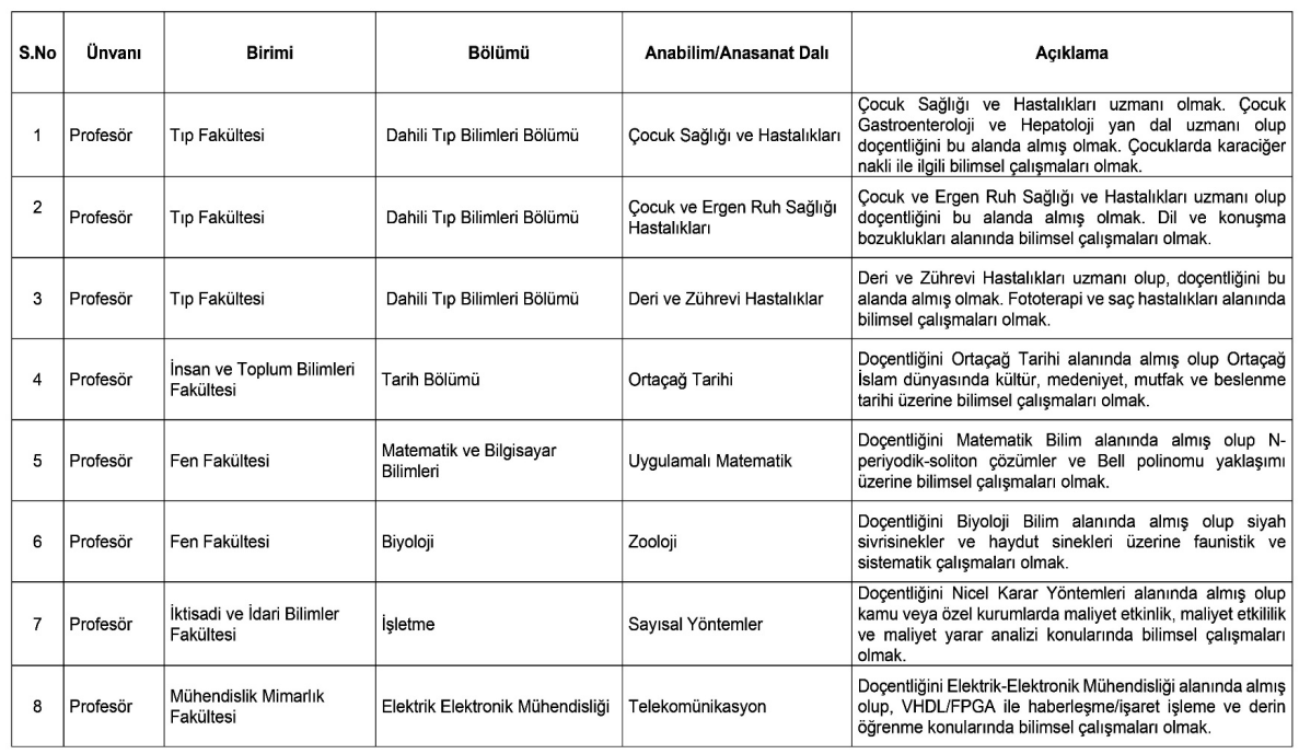 Başvuru yapan adayların, ilan edilen kadrolara uygunlukları incelenecek ve yayın dosyalarının asgari koşulları karşılaması halinde başvurular kabul edilecek. Bu süreç, akademik kariyer hedefleyen araştırmacılar için önemli bir fırsat sunuyor.