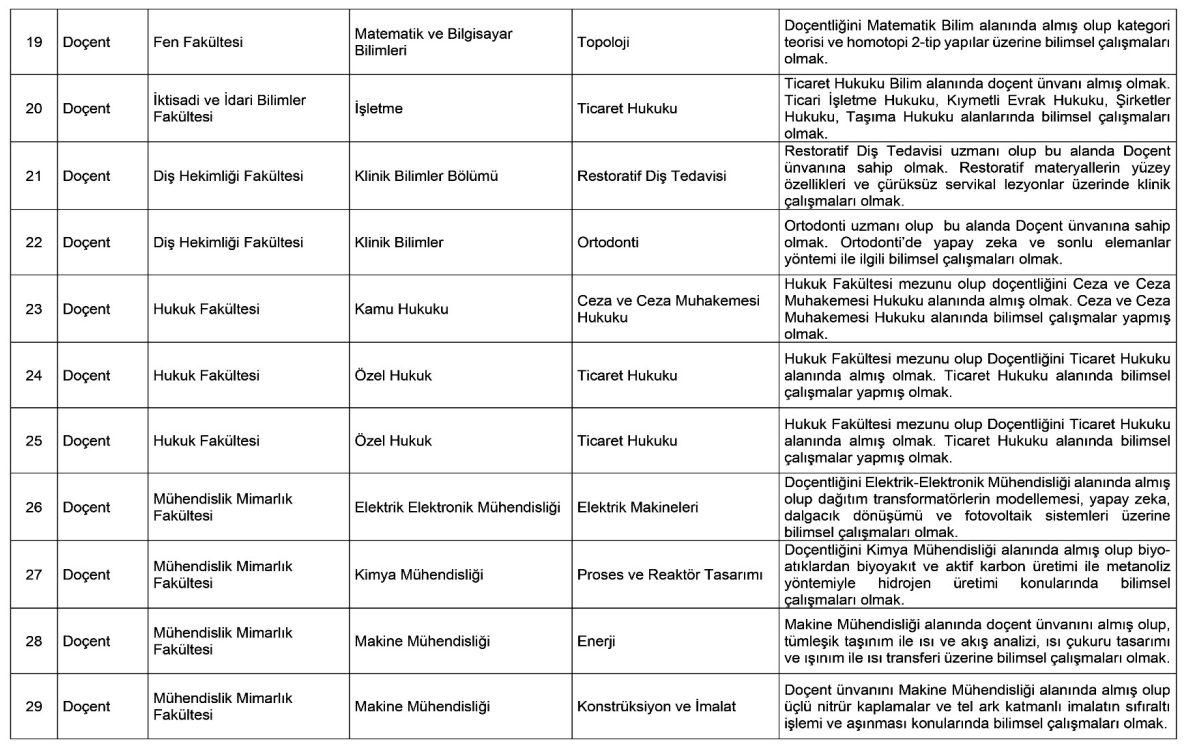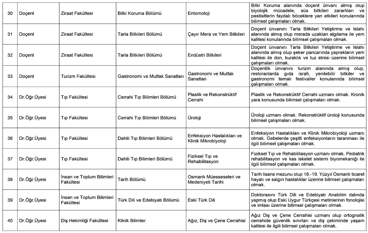 Doktor Öğretim Üyeleri, Üniversitemiz bünyesinde doktora veya sanatta yeterlik eğitimlerini tamamlayanlar için belirlenen %30’luk kota kapsamında başvuru yapamayacak.