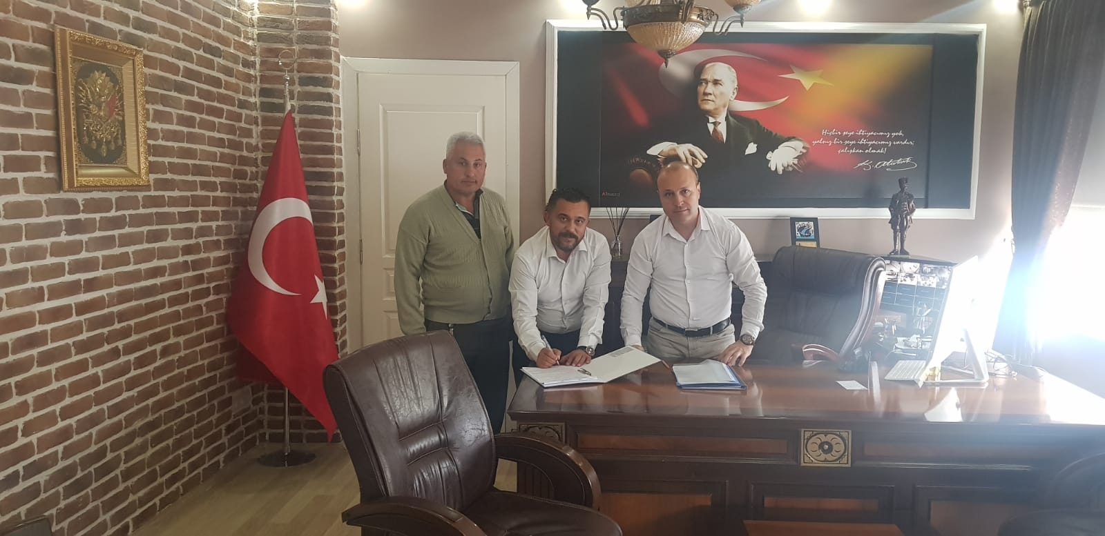 Yapılan görüşmeler sonucunda Evreşe Belediyesi ile Hizmet-İş Sendikası arasında Toplu İş Sözleşmesi imzalandı. Belediye Başkanı Dr. Ali Kamil Soyuak’ ın makamında gerçekleştirilen imza töreninde konuşma yapan Başkan Soyuak; “Vatandaşlarımızın refahı ve huzuru için ihtiyaç duyulan hizmetleri sunmak için gece gündüz hep beraber çalışıyoruz ve yaptığımız faaliyetlerle halkımıza faydalı olmayı amaçlıyoruz” dedi.