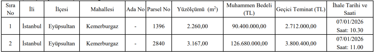 İlana göre satışa çıkarılan taşınmazlar İstanbul’un gelişim potansiyeli yüksek bölgelerinden biri olan Kemerburgaz’da bulunuyor. Her iki taşınmaz da farklı yüzölçümü ve muhammen bedelleriyle dikkat çekiyor.