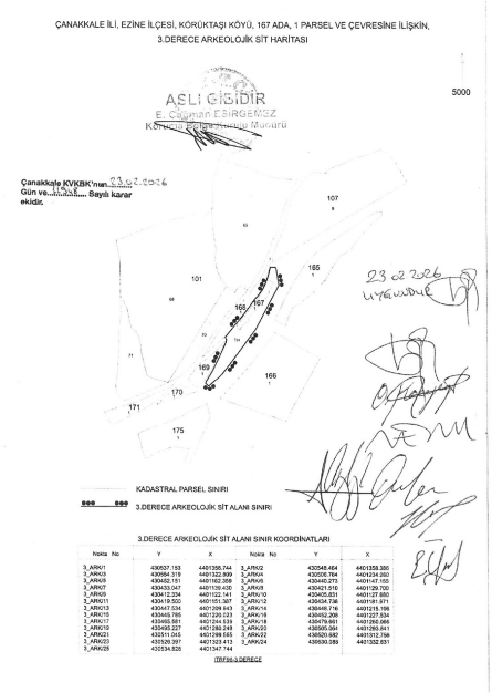 Kültür ve Turizm Bakanlığı’na bağlı Çanakkale Kültür Varlıklarını Koruma Bölge Kurulu, Ezine’de yer alan ve arkeolojik mirasıyla öne çıkan Alexandria Troas Antik Kenti sınırları içindeki önemli bir parsel için dikkat çeken bir karara imza attı. Kurulun 23 Şubat 2026 tarihli toplantısında alınan kararla, I. Derece Arkeolojik Sit statüsünde bulunan 167 ada 1 parsel ve bitişiğindeki tapulama harici alanın sit derecesi III. Derece Arkeolojik Sit olarak revize edildi.