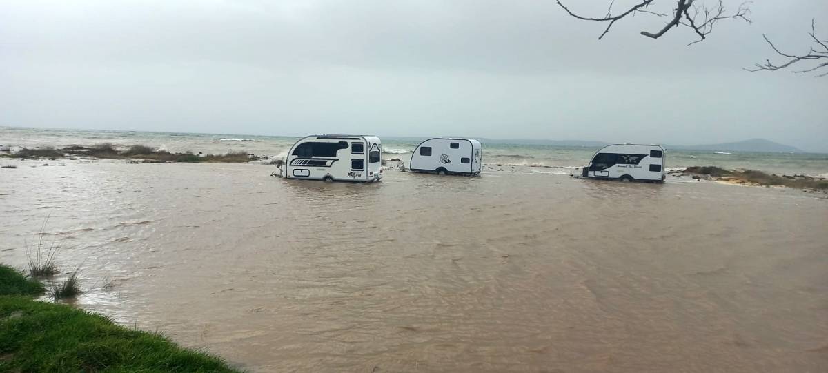 Odunluk İskelesi yakınında park halinde bulunan çok sayıda karavan, yükselen deniz suyu nedeniyle su altında kaldı. Karavanların tekerlek hizasına kadar suya gömüldüğü, bazı noktalarda ise su seviyesinin daha da yükseldiği gözlendi.