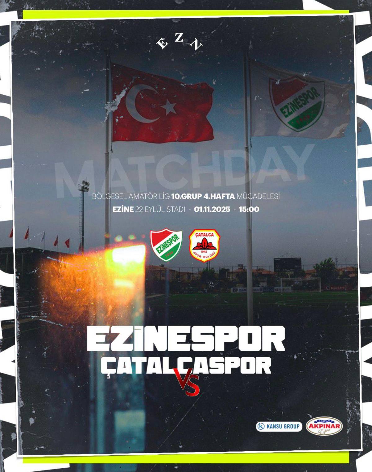 Bölgesel Amatör Lig (BAL) 10. Grup’ta 4. hafta heyecanı başlıyor. Çanakkale temsilcisi Ezinespor, kendi sahasında Çatalcaspor’u ağırlamaya hazırlanıyor. Karşılaşma, 1 Kasım Cumartesi günü saat 15.00’te Ezine 22 Eylül Stadı’nda oynanacak.
