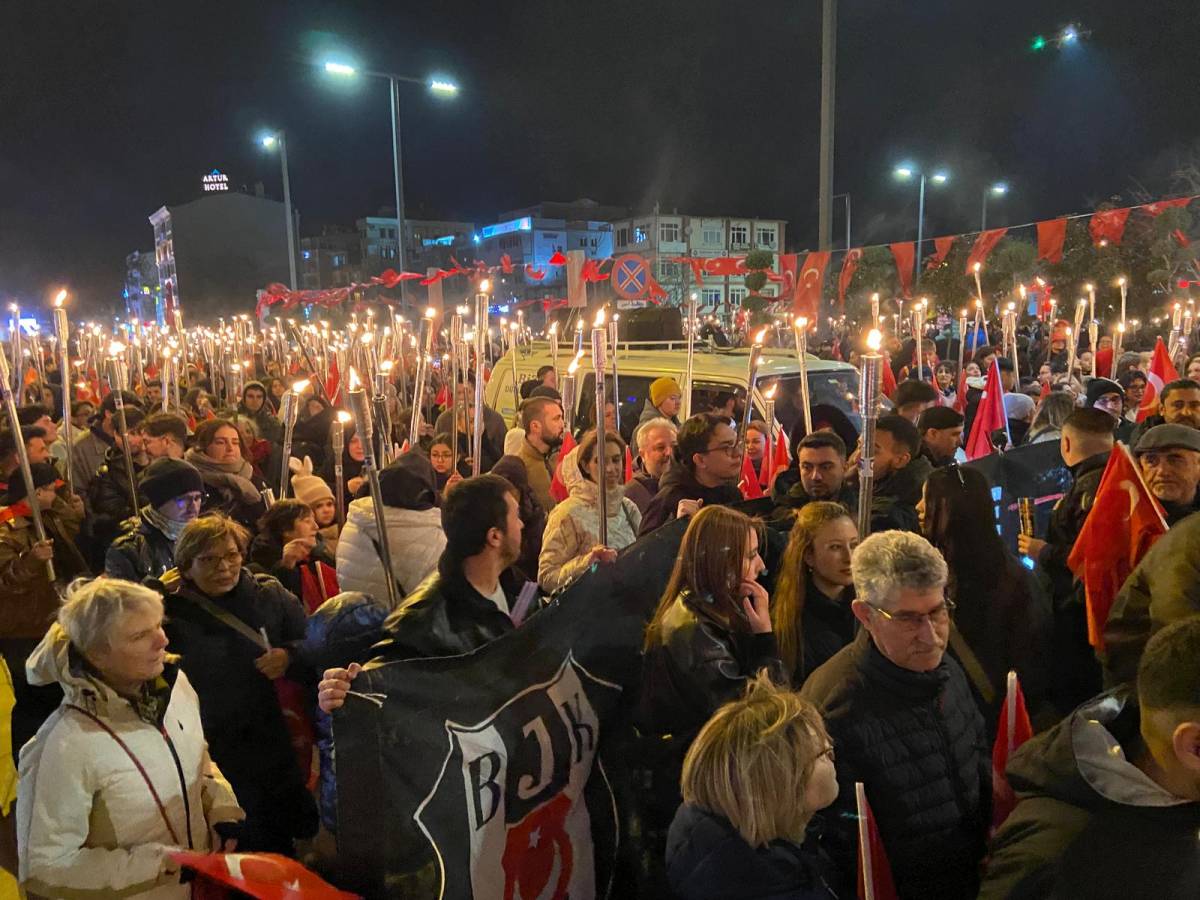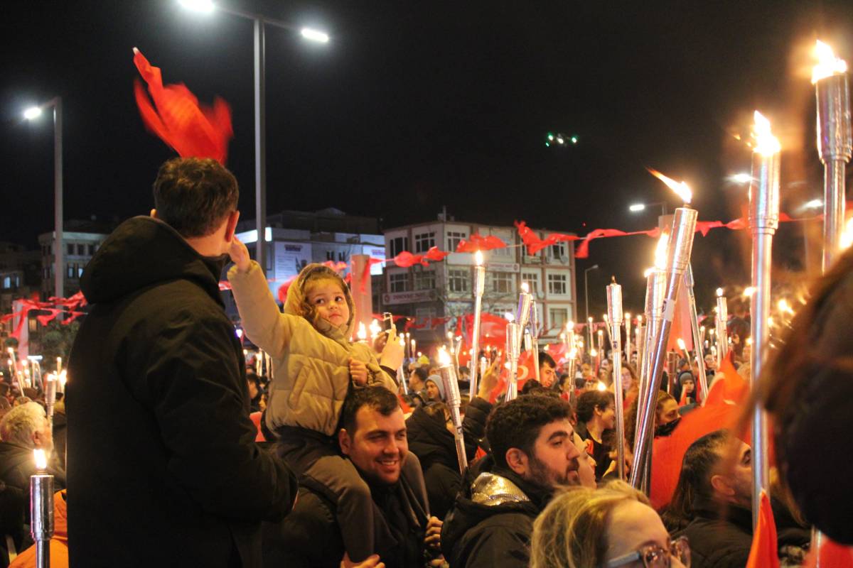 Çanakkale Valiliği tarafından organize edilen geleneksel fener alayı, saat 20.45’te Cumhuriyet Meydanı’nda toplanan dev kalabalıkla başladı. Mart ayının dondurucu soğuğuna ve kent genelinde hissedilen sert rüzgara aldırış etmeyen binlerce vatandaş, ellerinde Türk bayrakları ve meşalelerle meydanı adeta bir ışık denizine çevirdi. Her yaştan kentlinin yoğun ilgi gösterdiği yürüyüş, Çanakkale ruhunun 111 yıl sonra da aynı heyecanla yaşadığını bir kez daha kanıtladı.