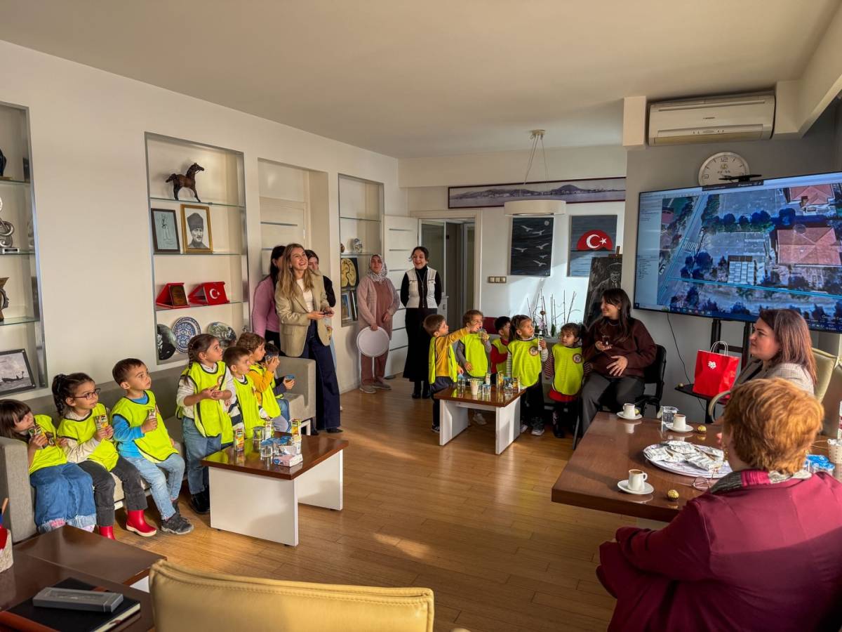 Dünya İnsan Hakları Günü dolayısıyla Fernur Sözen Anaokulu’nun minik öğrencileri, öğretmenleri, okul müdürü ve okulun yapımına destek veren hayırsever Fernur Sözen, Küçükkuyu Belediye Başkanı Muttalip Gürel tarafından misafir edildi.