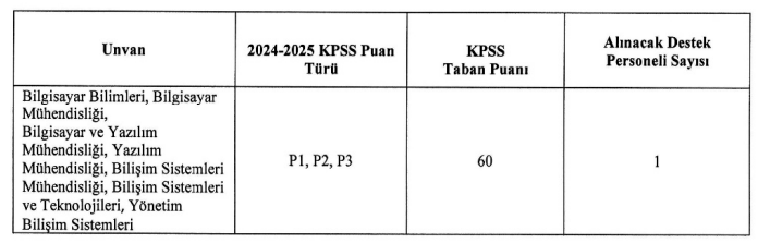 Destek personeli alımında ise KPSS puanı yüzde 90 oranında belirleyici olacak. Yüksek lisans mezuniyeti ise ek puan avantajı sağlayacak.