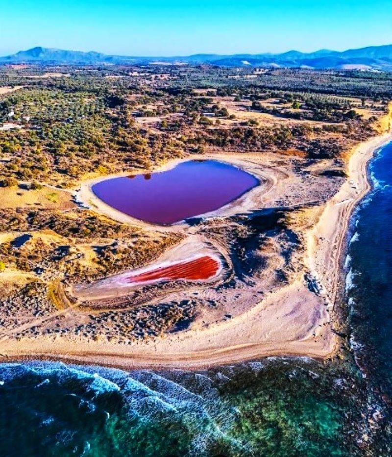 Dalyan Köyü yakınlarındaki bu göl, yılın belli zamanlarında içindeki mikroorganizmalar sayesinde toz pembe bir renge bürünür. Kalp şeklindeki yapısı ve etrafındaki antik kalıntılarla birleşince ortaya gerçeküstü bir manzara çıkıyor.