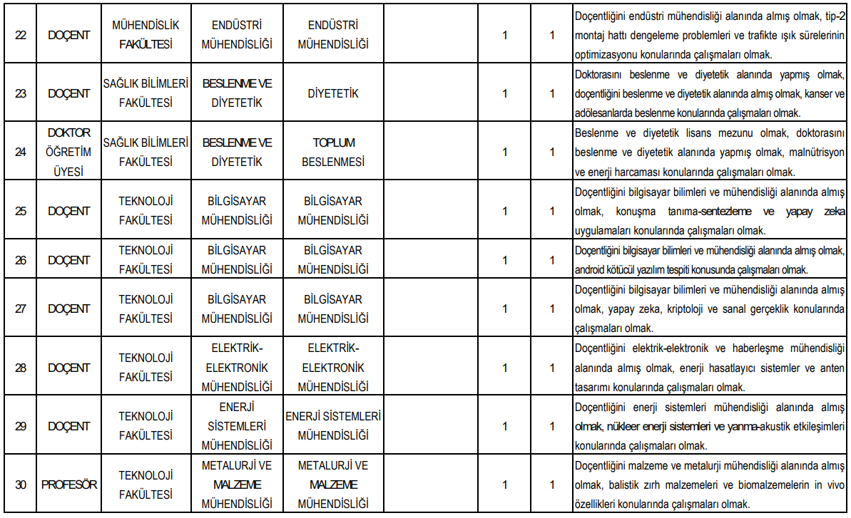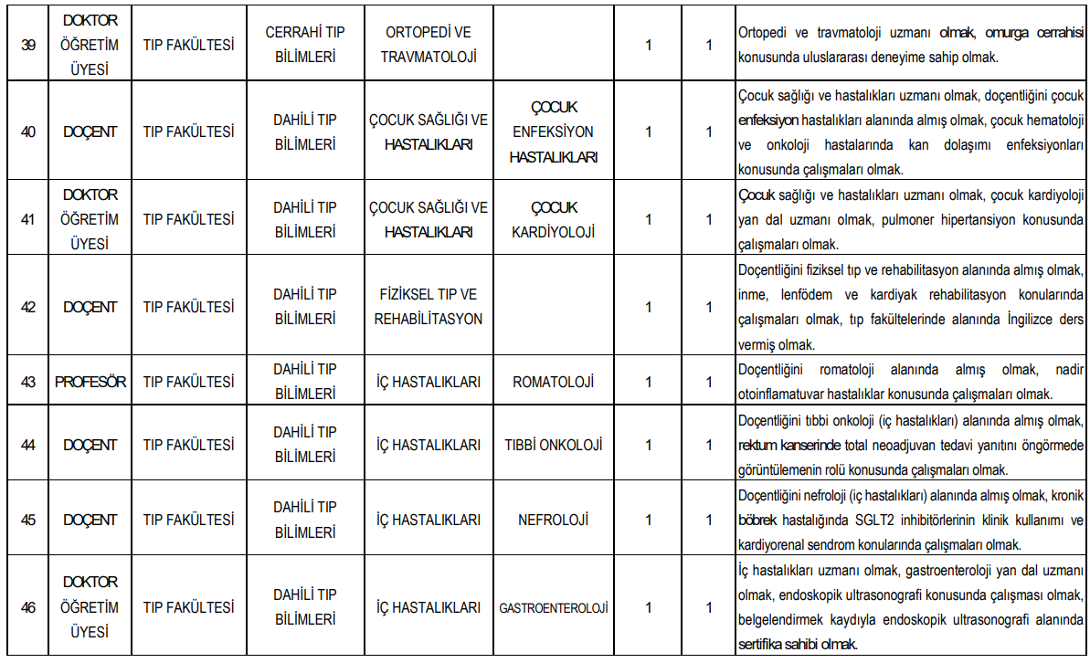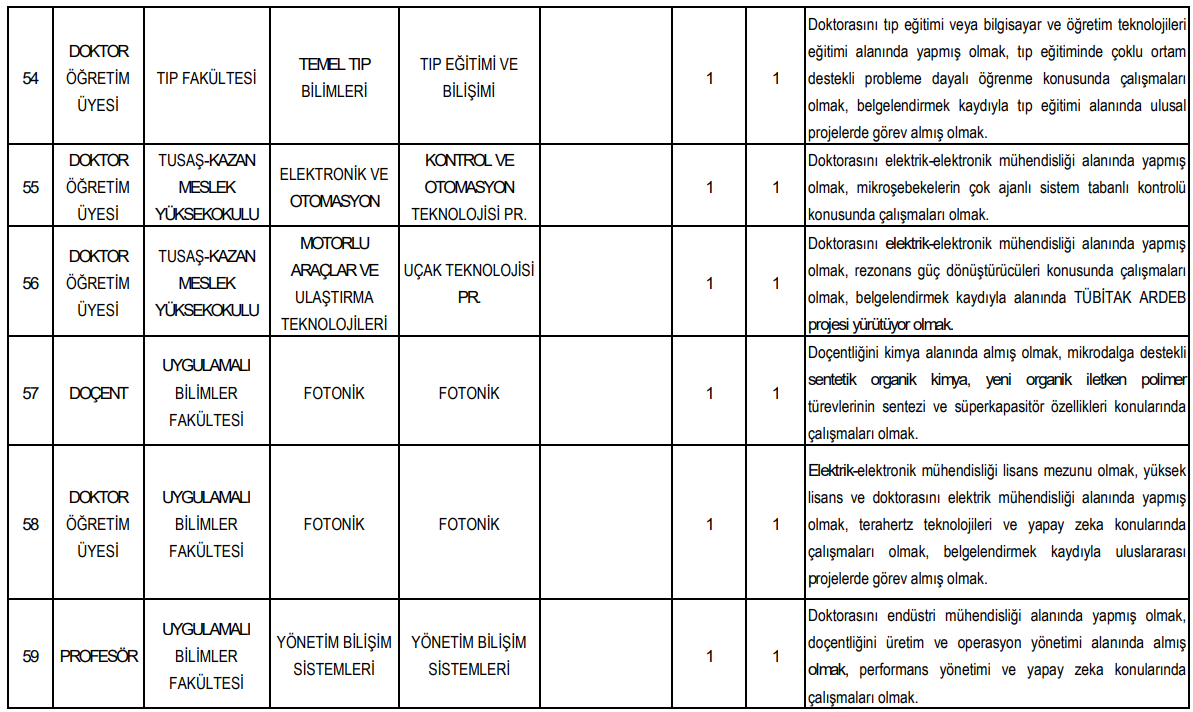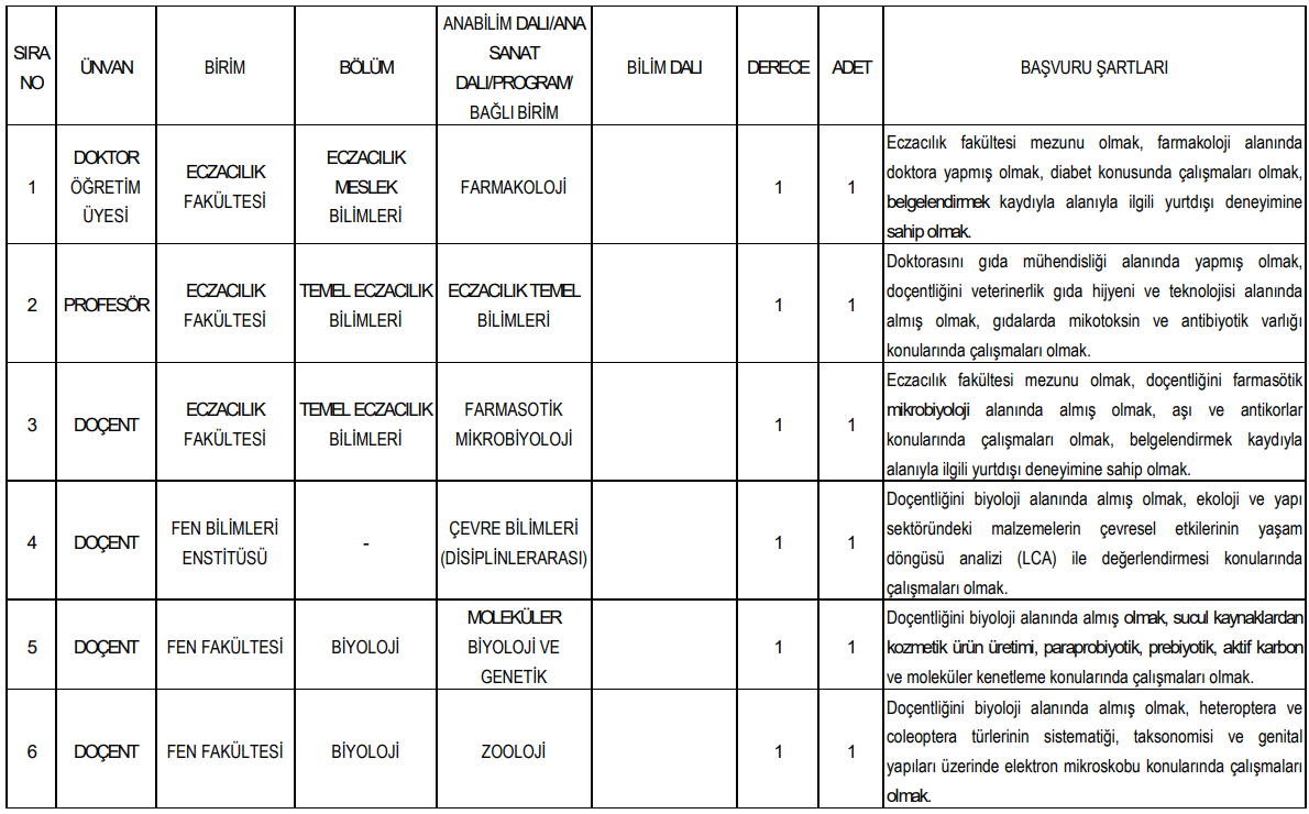 Başvuracak adayların 2547 sayılı Yükseköğretim Kanunu ile 657 sayılı Devlet Memurları Kanunu’nun 48. maddesinde yer alan koşulları taşımaları gerekiyor. Ayrıca, öğretim üyesi kadroları için Üniversitenin Akademik Yükseltilme ve Atanma Kriterleri Yönergesinde belirtilen asgari şartların sağlanması zorunlu tutuldu.