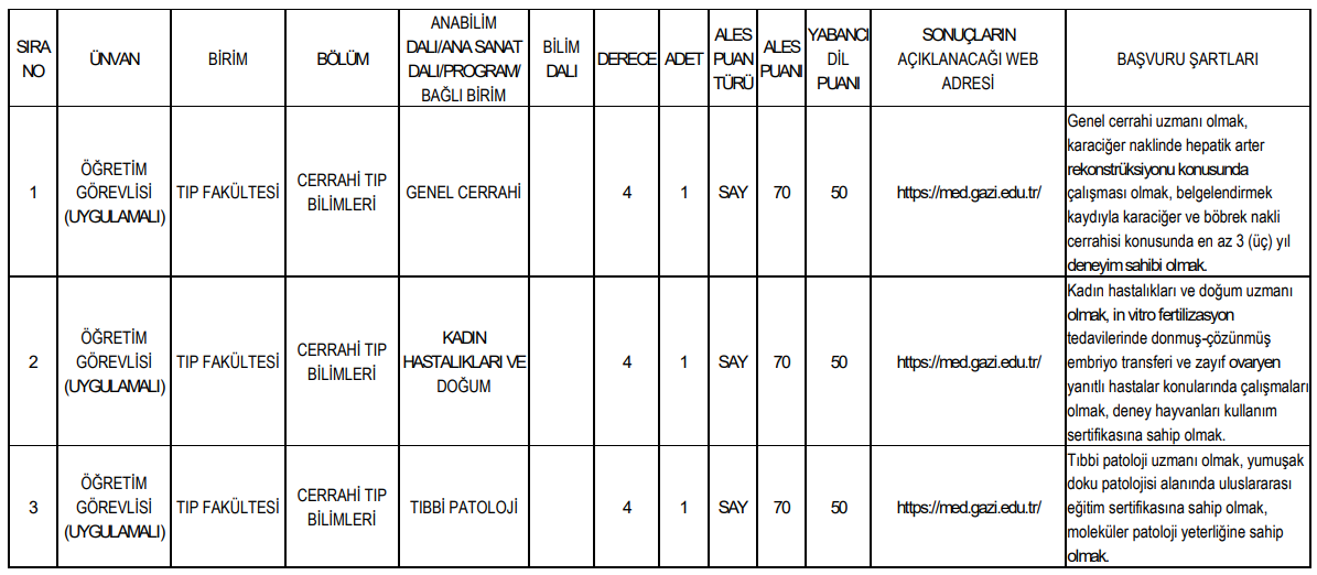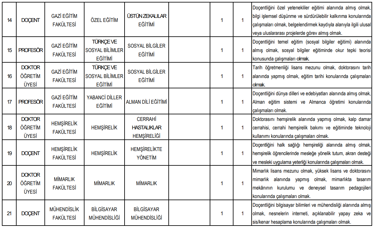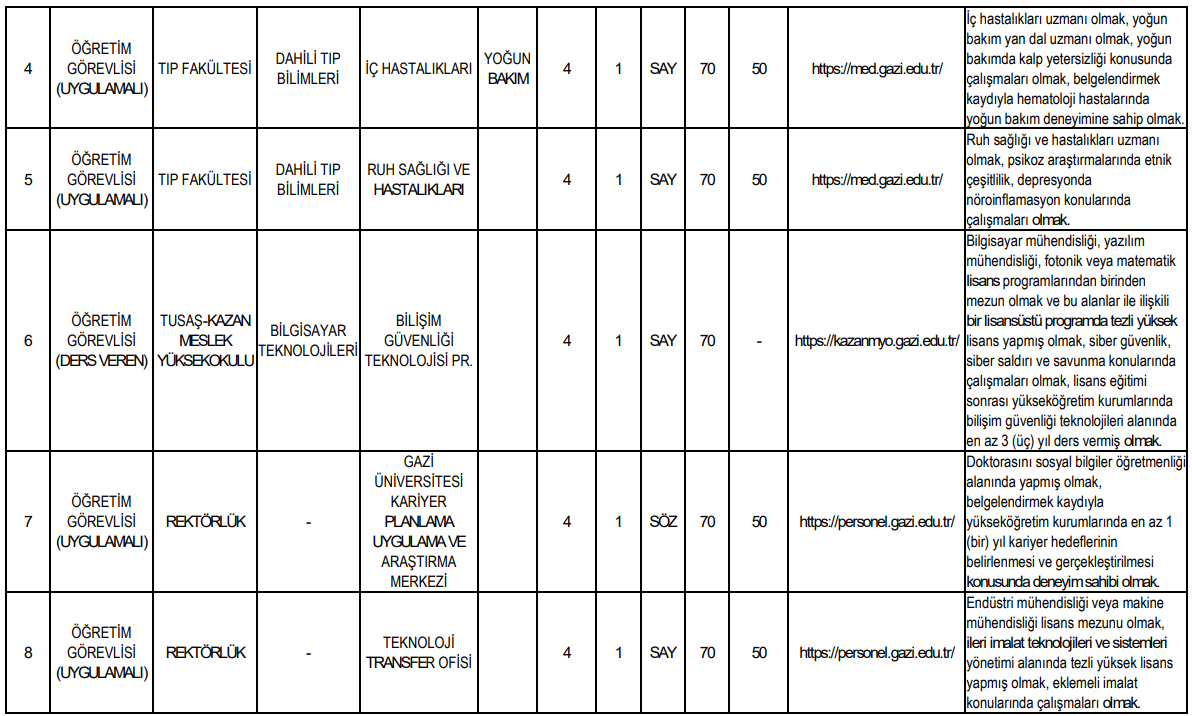 Öğretim Üyesi dışındaki Öğretim Görevlisi kadroları için yapılacak alımlar da yine personelilan.gazi.edu.tr üzerinden gerçekleştirilecek. Bu kapsamda, başvuracak adaylardan: