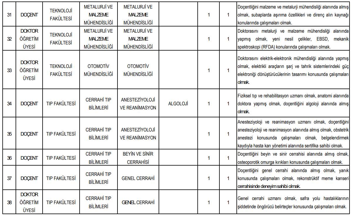 Doçent kadrosu için başvuracak adaylar da daimi statüde atanacak olup, istenen belgelerin profesör kadrolarında talep edilen belgelerle büyük ölçüde aynı olduğu bildirildi. Bu pozisyonlara başvuran adayların bilimsel çalışma ve yayın dosyalarının eksiksiz olarak sisteme yüklenmesi gerektiği duyuruldu.