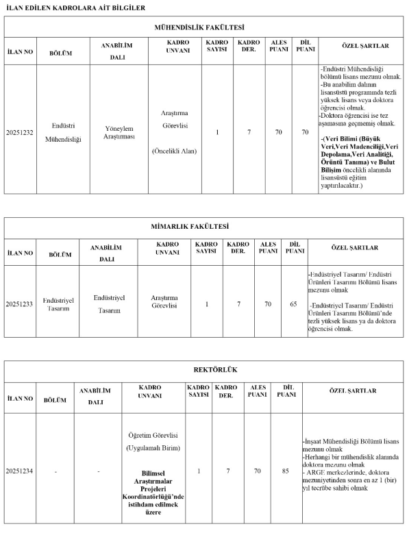 ÖĞRETİM ELEMANI ALIMI DETAYLARI