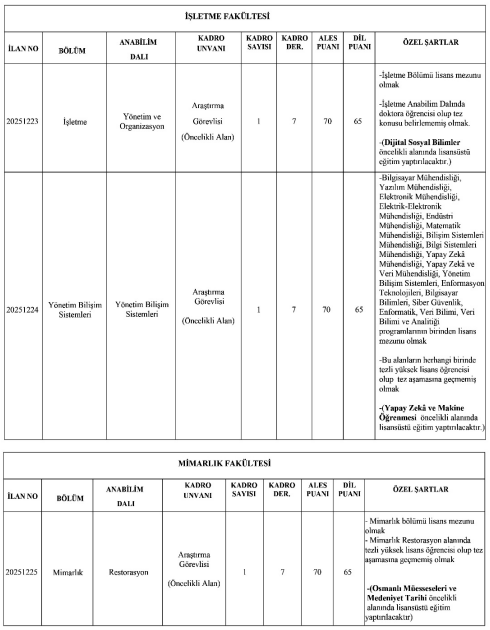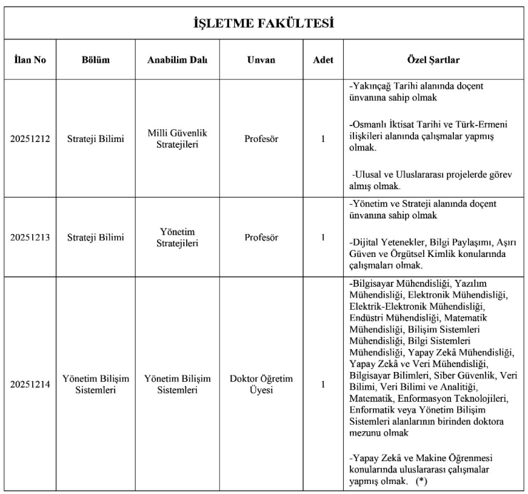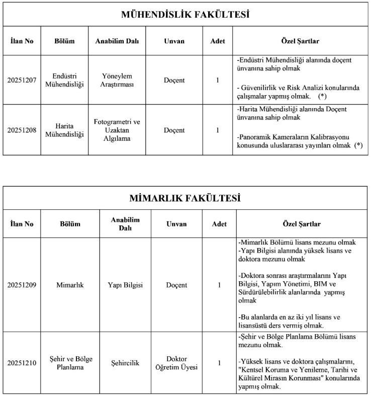 Adaylar, üniversite tarafından eş zamanlı yayımlanan ilanlardan yalnızca bir kadroya başvuru yapabilecek. Birden fazla kadroya yapılan başvurular geçersiz sayılacak.