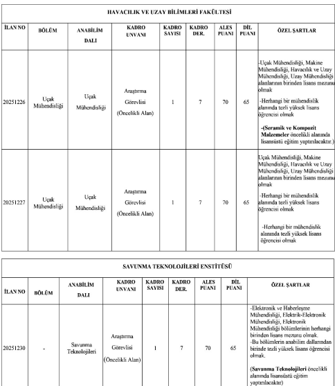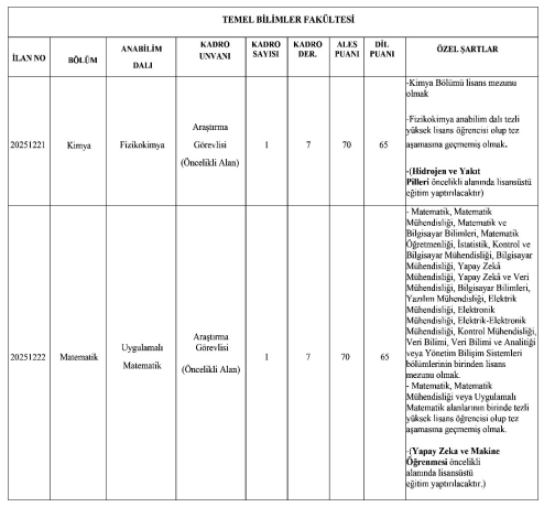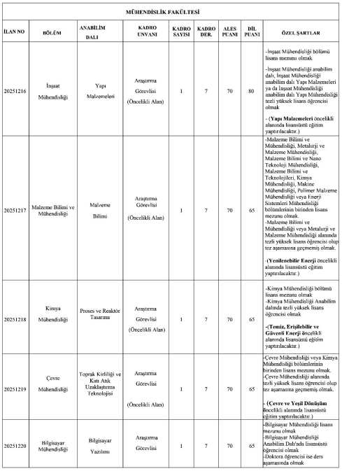 Gebze Teknik Üniversitesi ayrıca, öğretim üyesi dışındaki öğretim elemanı kadroları için de ilan yayımladı. Bu kapsamda alımlar;