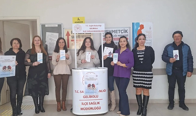 ‘’Dünya Böbrek Günü” kapsamında Gelibolu’da, Gelibolu İlçe Sağlık Müdürlüğü Personelleri ve Özlem Güntülü Güngör tarafından, bilgilendirme çalışması yapıldı. Gelibolu’daki okullardaki öğretmenlere, sağlık çalışanlarına ve aile sağlığı merkezlerine gelen hastalara stant açılıp, broşür dağıtımı yapıldı.