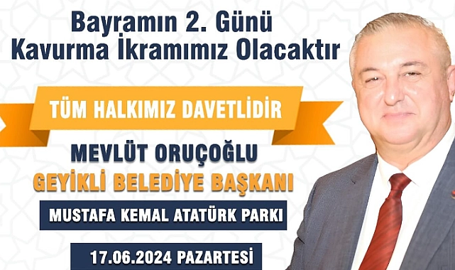 Geyikli Belediye Binası önünde 17 Haziran Pazartesi (bayramın 2. günü) Saat 12:00’de bayramlaşma programı ve kavurma ikramı gerçekleşecek.
