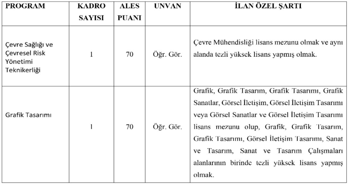 İzmir Kavram Meslek Yüksekokulu’nda açılan öğretim görevlisi kadroları iki farklı programı kapsıyor. Her program için 1’er öğretim görevlisi istihdam edilecek.