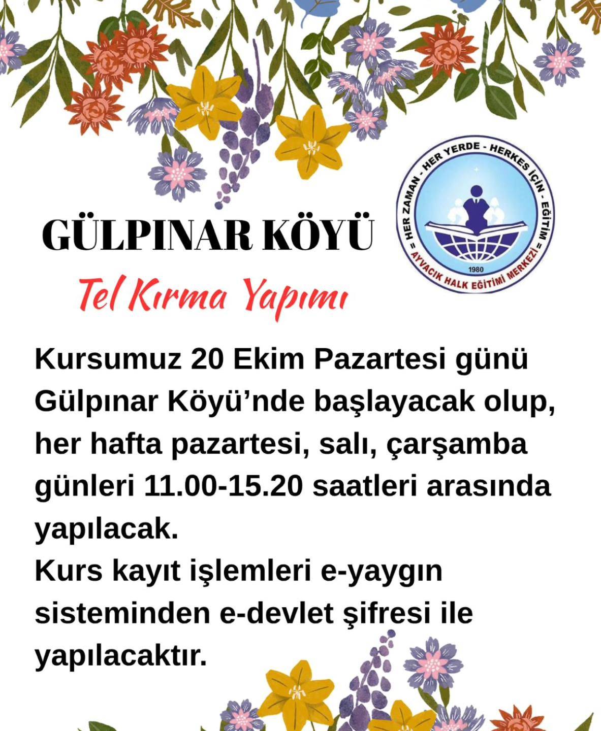 “Gülpınar Köyü’nde yaşayan tüm vatandaşlarımızı bu anlamlı kursa davet ediyoruz. El emeği ve sabırla yapılan tel kırma sanatı, hem kültürümüzün bir parçası hem de ekonomik bir değerdir. Kursumuzda hem yeni bir beceri kazanabilir hem de keyifli vakit geçirebilirsiniz.”