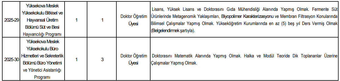 Hakkari Üniversitesi Rektörlüğü, Resmî Gazete’de yayımlanan ilanla birlikte üniversitenin farklı fakülte ve meslek yüksekokullarında görevlendirilmek üzere öğretim üyesi ve öğretim görevlisi alımı yapılacağını duyurdu. İlan kapsamında profesör, doçent, doktor öğretim üyesi ve öğretim görevlisi unvanlarında toplam 31 akademik kadro için başvuru süreci başlatıldı.