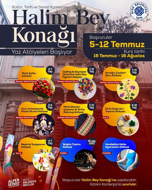 Başvurular Halim Bey Konağı'na yapılacak olup, detaylı bilgi için konağa başvurulması gerektiği belirtiliyor.