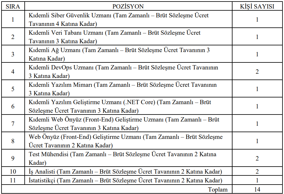 Kıdemli Siber Güvenlik Uzmanı – 1 kişi (Ücret tavanının 4 katına kadar)