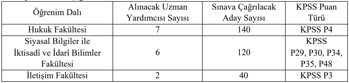 İletişim Fakültesi mezunlarından 2 kişi alınacak ve bu alandan 40 aday sınava çağrılacak. Başvuru yapacak adayların KPSS P3 puan türünden en az 70 puana sahip olmaları gerekiyor.