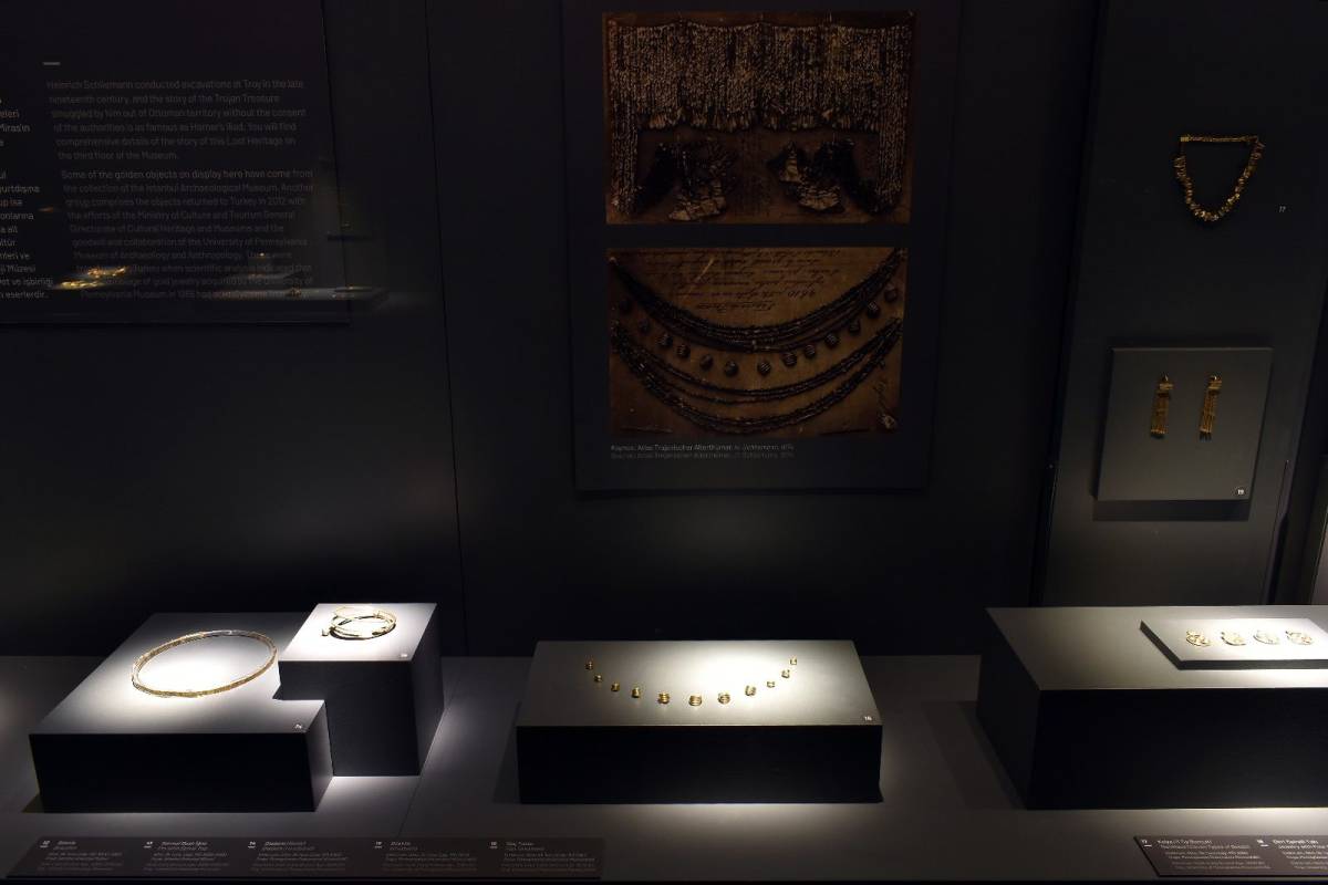 Serginin bir bölümü, 19. yüzyılın sonlarında Troya'da kazılar yapan Alman tüccar ve amatör arkeolog Heinrich Schliemann'ın yurt dışına kaçırdığı paha biçilmez hazinelerden geriye kalan ve İstanbul Arkeoloji Müzeleri'nden getirilen eserlerden oluşuyor.