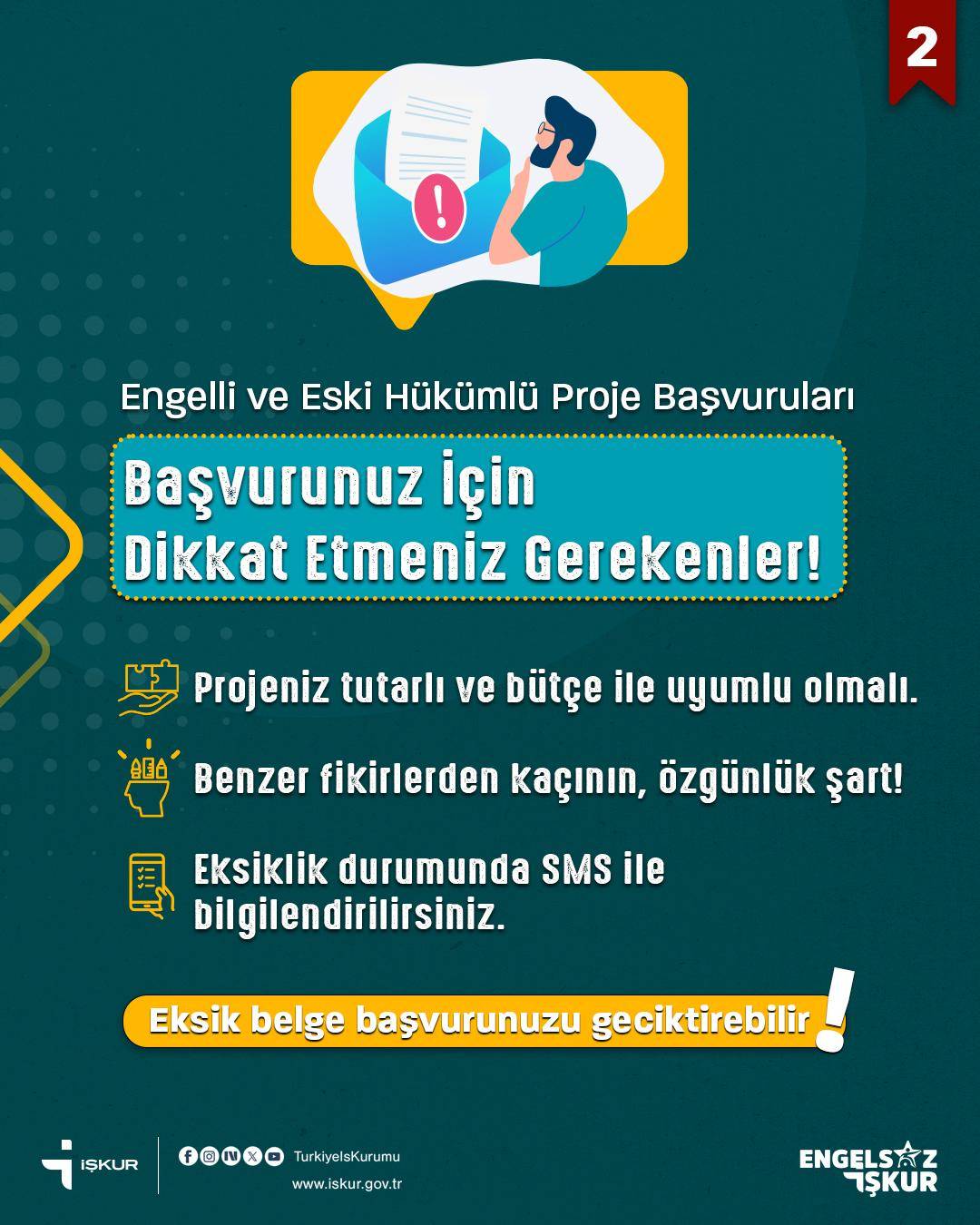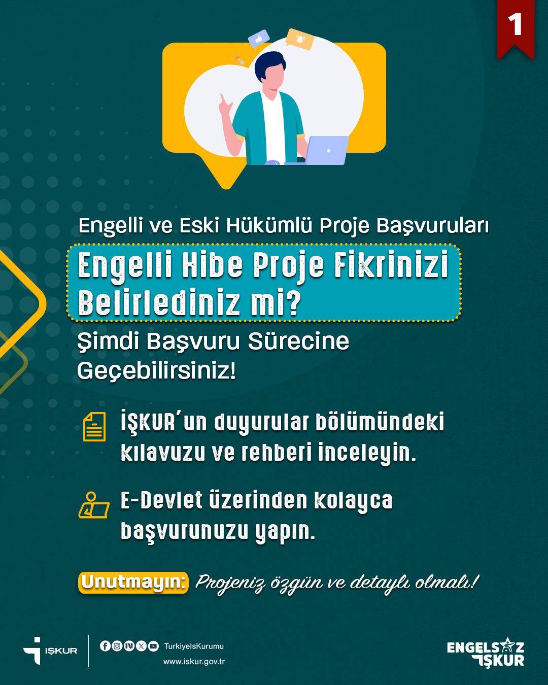 Engelli ve eski hükümlü vatandaşların iş hayatına katılımını desteklemek amacıyla Türkiye İş Kurumu (İŞKUR) tarafından yürütülen hibe destek programı kapsamında başvurular başladı. Kendi işini kurmak isteyen engelli ve eski hükümlüler, hazırlayacakları özgün ve uygulanabilir projelerle destek almaya hak kazanabilecek.