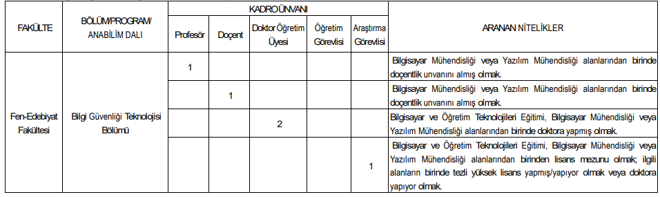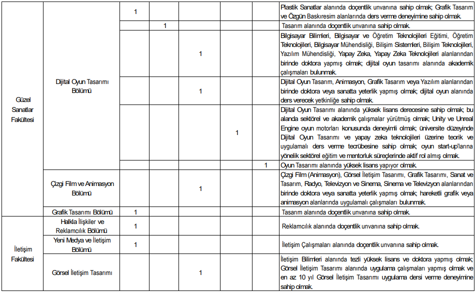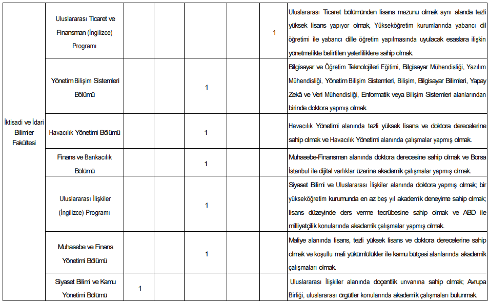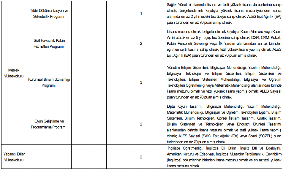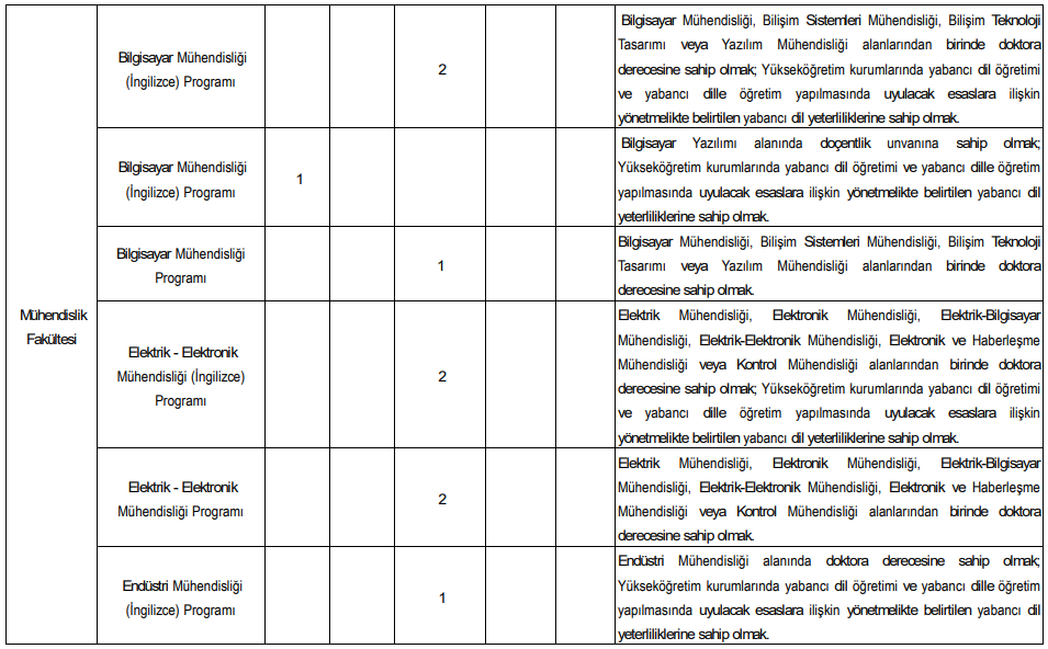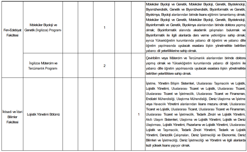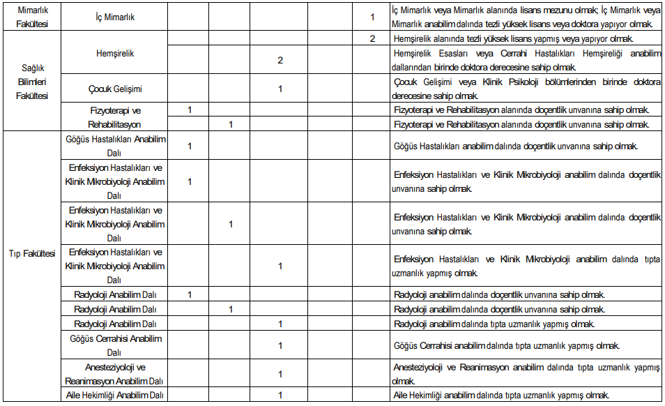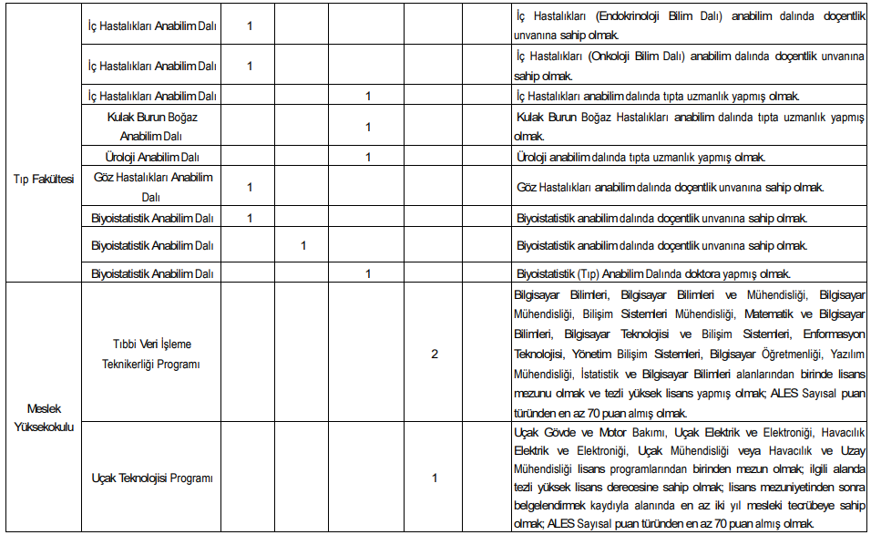 İlan kapsamında çok sayıda akademik birim için kadro açıldı. Alım yapılacak bazı fakülte ve programlar şöyle: