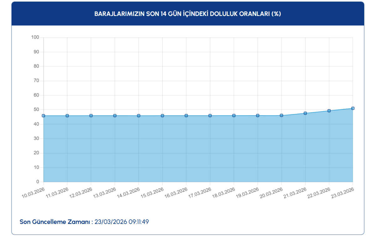Yağışlarla gelen artışa rağmen veriler, su yönetimi konusunda temkinli olunması gerektiğini gösteriyor. Geçmiş yılların 23 Mart verileriyle kıyaslandığında, 2026 yılındaki yüzde 51,01'lik oran, son 10 yılın aynı dönemine göre kaydedilen en düşük ikinci seviye olarak kayıtlara geçti. 2019 yılında aynı tarihte yüzde 94,11 olan doluluk oranının, 2023 yılında yüzde 37,02'ye kadar düştüğü görülürken, mevcut tablonun son 10 yılın ortalamasının oldukça gerisinde kalması dikkat çekti.