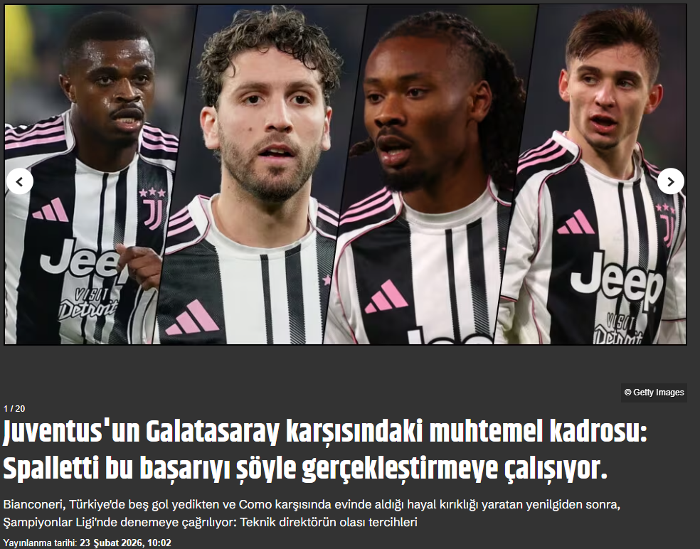 Torino merkezli Tuttosport, Juventus’un Galatasaray karşısındaki muhtemel kadrosunu ve teknik direktör Luciano Spalletti’nin planlarını ön plana çıkardı. Gazete, Bianconeri’nin İstanbul’da yediği beş golün ardından savunma kurgusunda değişikliğe gidebileceğini yazdı.