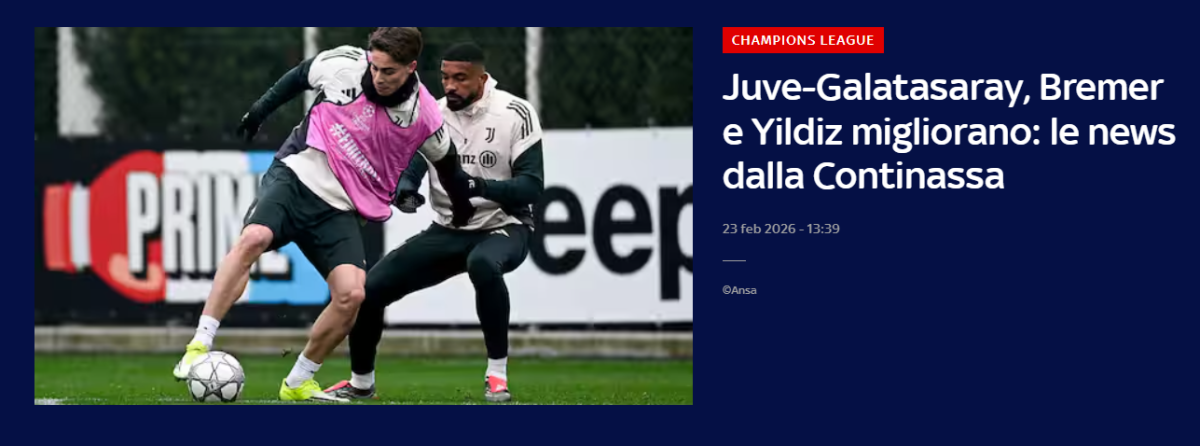 Sky Sport ise Juventus cephesindeki sakatlık durumlarına odaklandı. Geison Bremer ve Kenan Yıldız’ın son antrenmanlarda temkinli bir iyimserlik yarattığı belirtildi. Continassa’daki fizyoterapi sürecinin olumlu ilerlediği ve iki oyuncunun rövanş maçında forma giyme ihtimalinin arttığı aktarıldı.