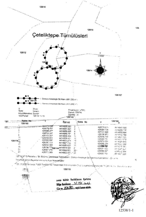 Sivas İli İmranlı İlçesi Duricin Mahallesi’nde daha önce 2002 yılında 1. derece arkeolojik sit ilan edilen Çeteliktepe Tümülüslerinin sınırları yeniden değerlendirildi. Kurul uzmanlarının incelemeleri sonucunda sit sınırlarının 128 ada 13, 14 ve 15 numaralı parsellerin bir bölümünü kapsayacak şekilde sayısallaştırılması kararlaştırıldı.